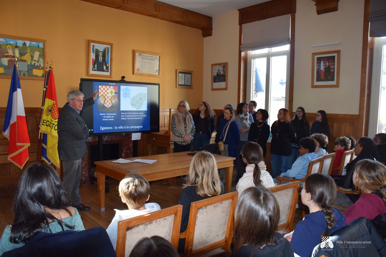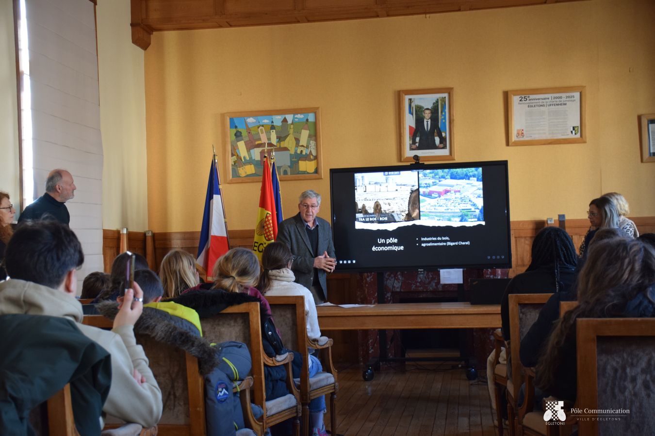 Au cours de la présentation, le Maire et son adjointe ont évoqué de manière simplifiée l’histoire, l’économie et les engagements environnementaux de la ville d’Égletons :