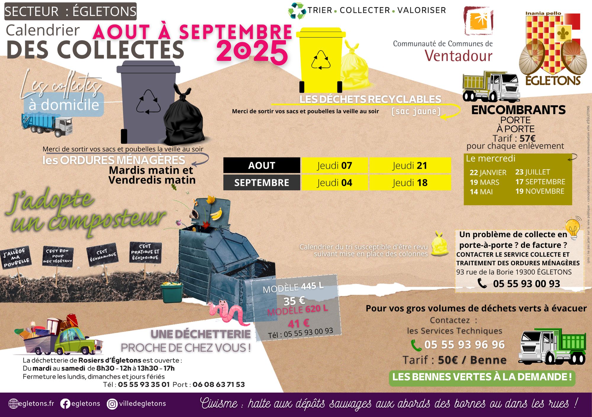Ce service compte environ 12 agents. Il assure également la gestion de la déchetterie de Rosiers d’Égletons et la collecte des encombrants à domicile.